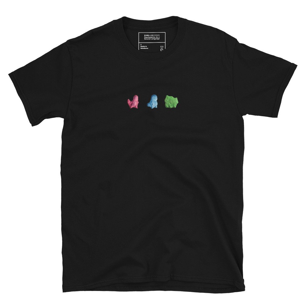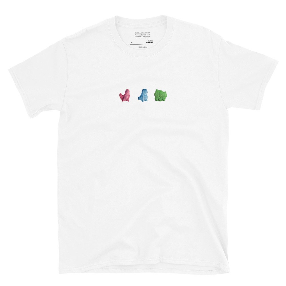 These friendly faces have been around during the childhood of everyone growing up in the 90s and early 2000s, in the form of small game cartridges with the names Red and Blue, now celebrating 30 years. But these strange creatures also appeared outside of the video game world in the early 2000s. For those looking for fun on the dance floor, we are talking about one of the most predominant “party drugs”, Ecstasy. These limited T-Shirts are exactly a tribute to the appearance of these pills in raves, festivals, and dance floors, which featured many of these small creatures that we love to call Ecstasymons!